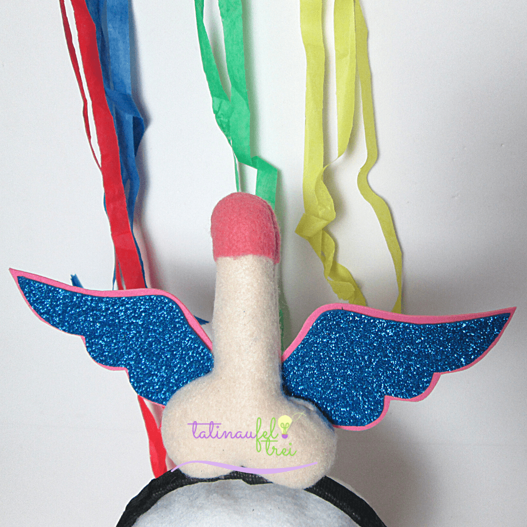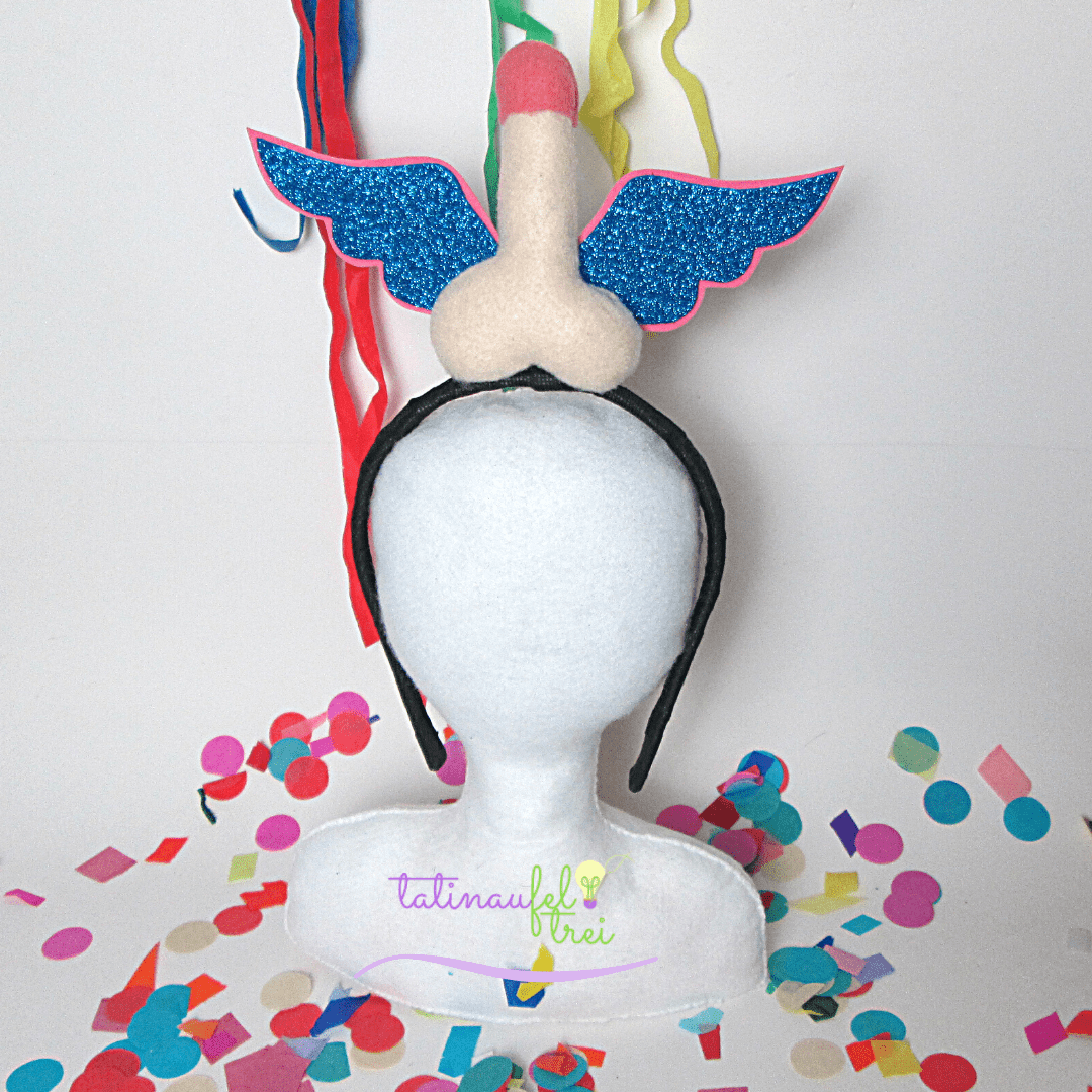 Tiara Caralho de Asa – Pênis bege com asas azuis.i